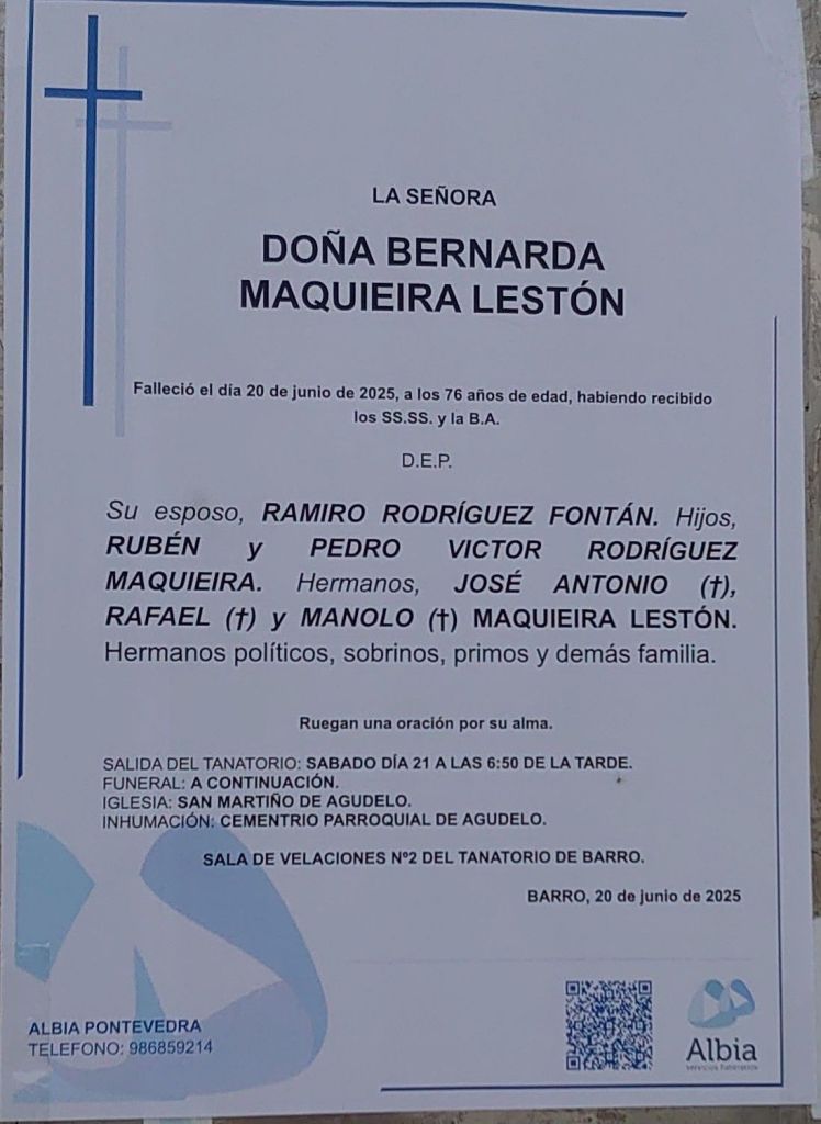 D.E.P. DOÑA BERNARDA MAQUIEIRA LESTÓN