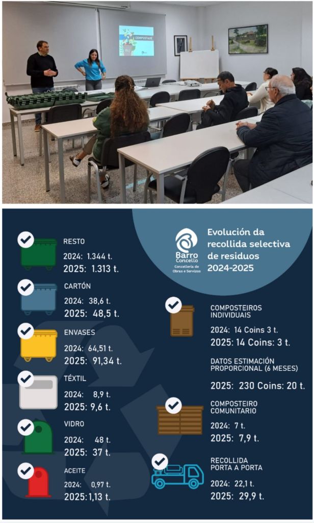 A política medioambiental iniciada esta lexislatura pola Concellería de Servizos de Barro está a demostrar unha tendencia positiva na xestión de biorresíduos e no aumento da recollida selectiva.