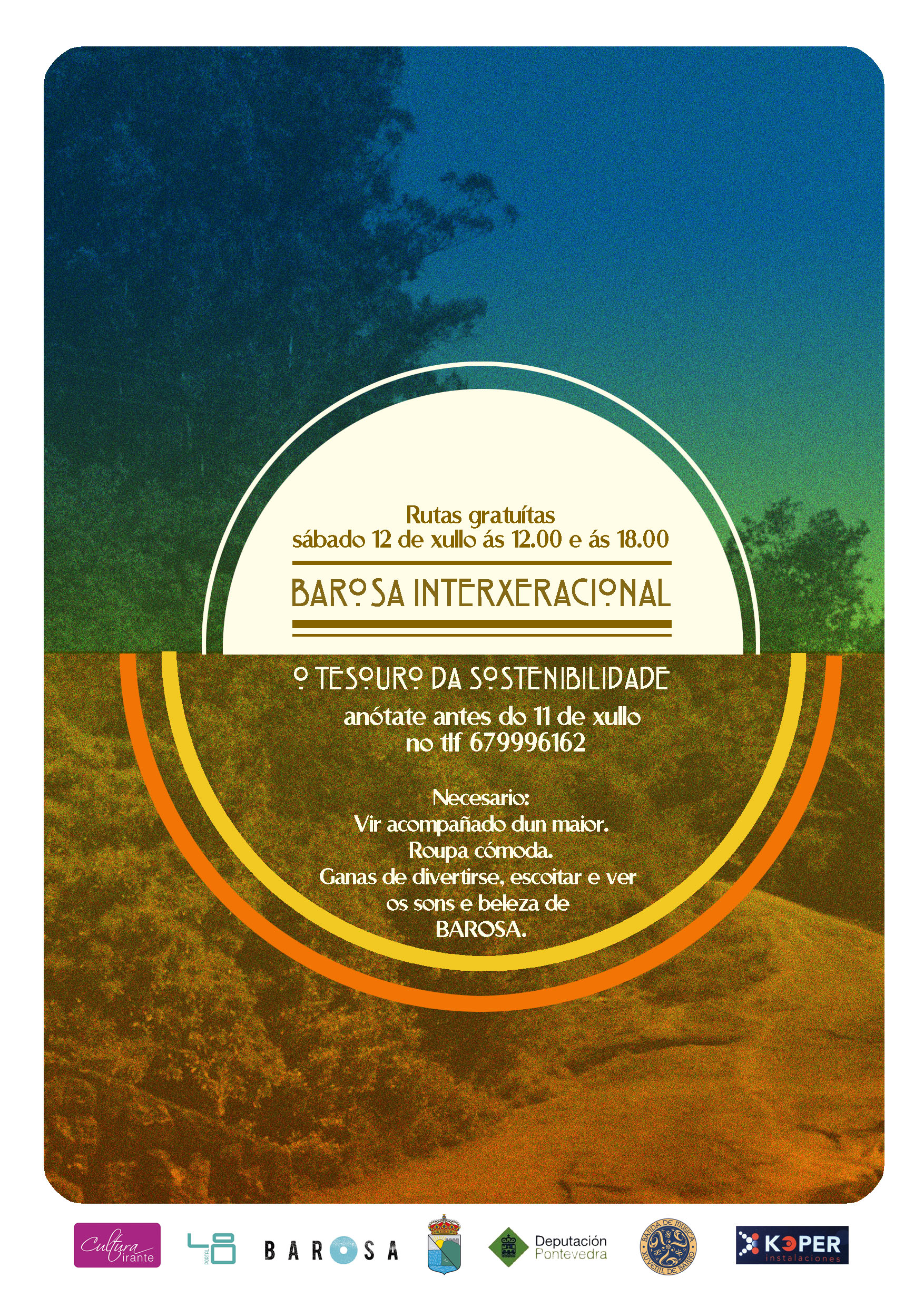 Rutas gratuítas o 12 de xullo, ás 12.00h e ás 18.00h. O tesouro da sostenibilidade. Barosa interxeneracional. Anótate antes do 11 de xullo no teléfono 679 996 162. Particípa!!
