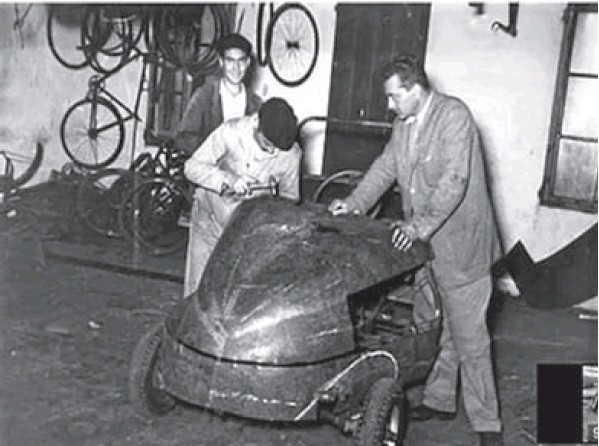 BARRO, 1950. No taller de Porráns, Reinaldo Constenla coloca o seu aparello fotográfico diante doutro enxeño de gran tamaño a medio facer. Dous traballadores con peto de tirantes e remangados martelan na peza metálica ao tempo que sorrín e un engaravatado director de traballo supervisa atento. Trátase de José Moldes Castro, persoeiro relevante de toda a comarca e máis do municipio en cuestión, que observa como se constrúe o que foi o primeiro prototipo de coche galego, saído do seu maxín, que chegou a circular polos carreiros da comarca durante tres anos e que ten unha historia propia que merece un capítulo aparte.