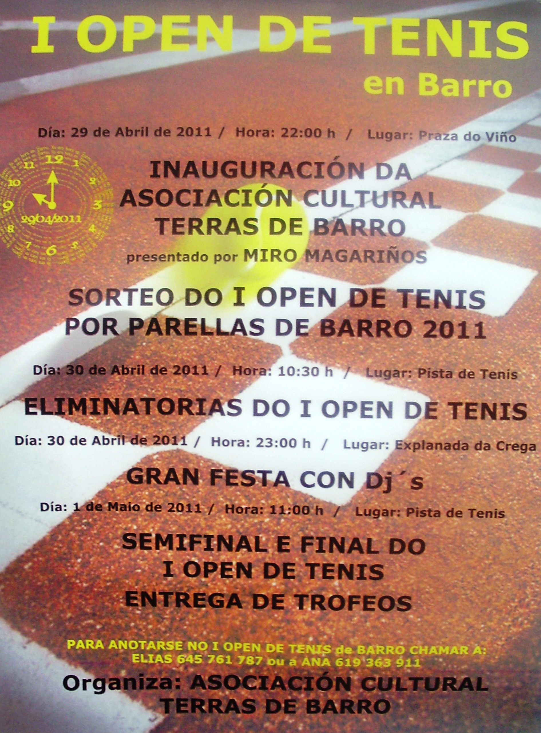 A Asociación cultural Terras de Barro informamos do seguinte torneo de tenis