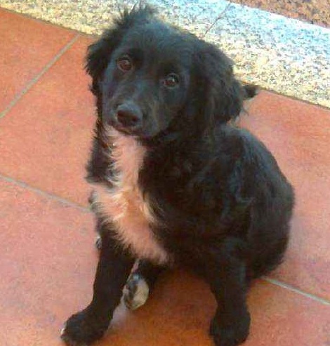 Chámase Gordi, pero tamén entende por Gorda. Gústalle morder as zapatillas. É xoguetona, cariñosa e tranquila, perfecta para nenos. Ten o pelo negro liso e nas patas traseiras ten como calcetíns brancos. De maior pesará sobre uns 10-13 kg e será de tamaño pequeno-medio. Non temos sitio na casa, por iso regalámola.