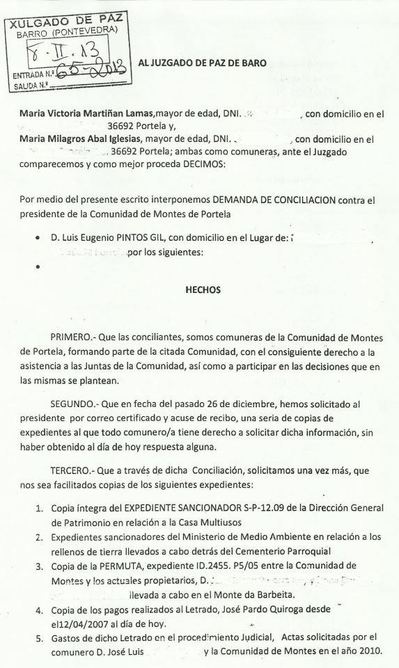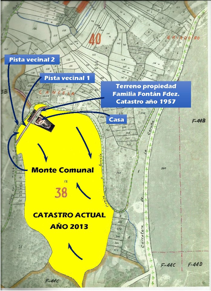 En relación a la titularidad del Monte Comunal, ya hemos emprendido las acciones legales correspondientes ante la Fiscalia de Pontevedra, solicitando el amparo de la autoridad judicial, quién tendrá la última palabra en relación a la superficie de terreno de los “supuestos propietarios” y la construcción de la vivienda de la familia Fontán en suelo en el que siempre a constado a lo largo de la historia, como Monte Comunal.