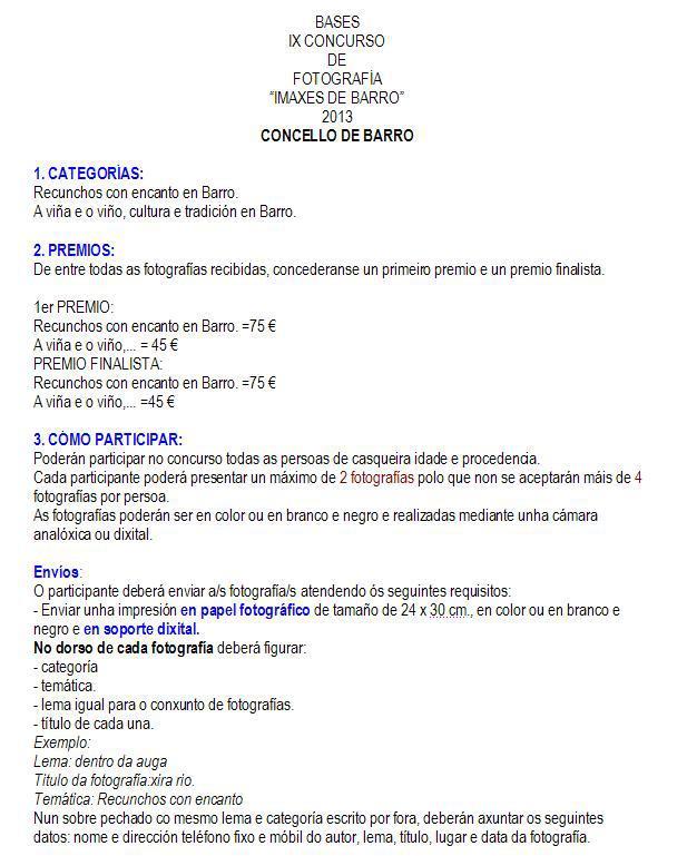 Os orixinais presentaranse na OMIX ou na Biblioteca do Concello de Barro.