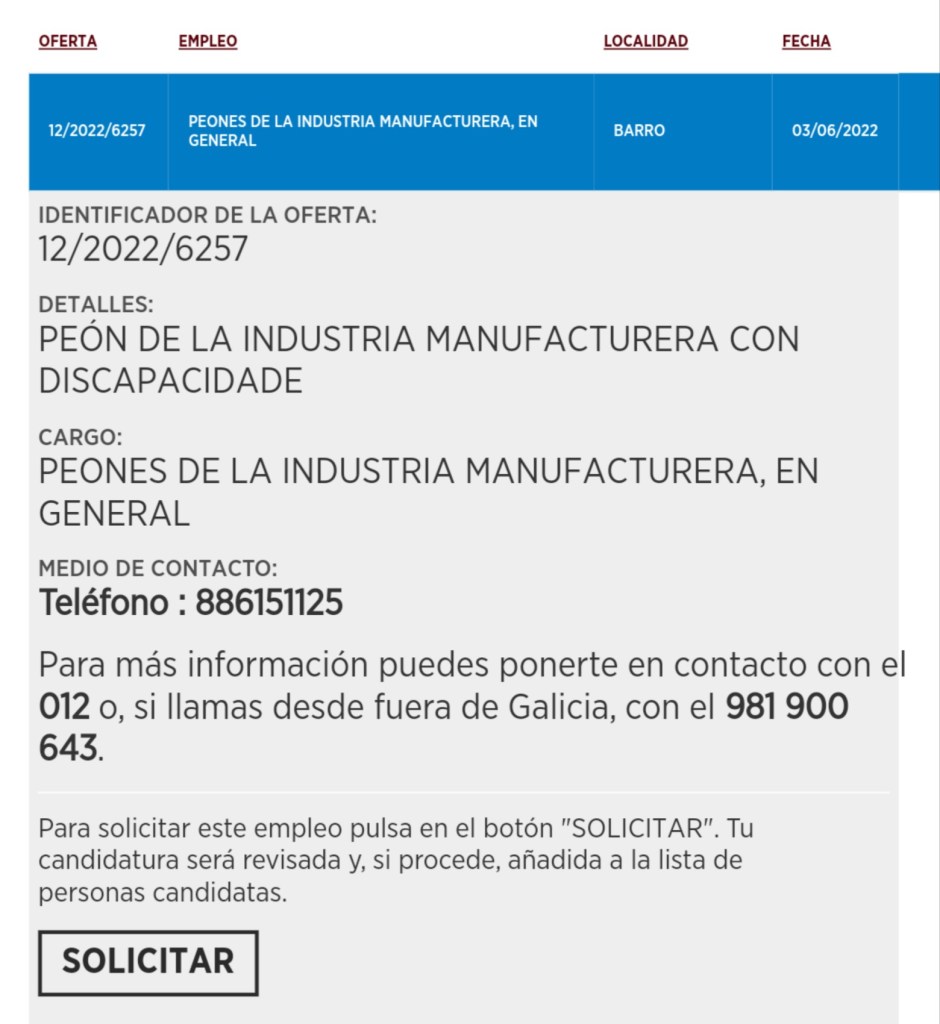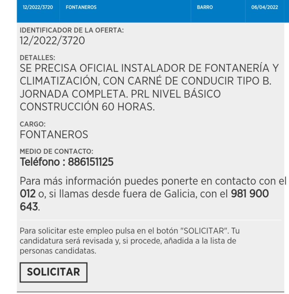OFERTA DE EMPREGO EN BARRO