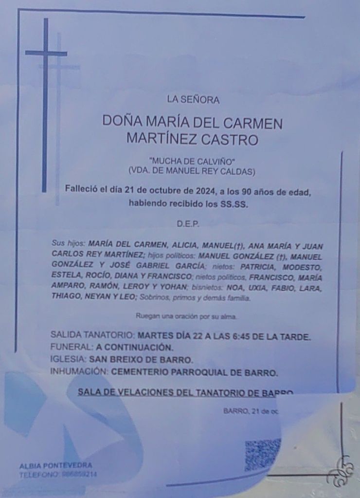 D.E.P. DOÑA MARÍA DEL CARMEN MARTÍNEZ CASTRO