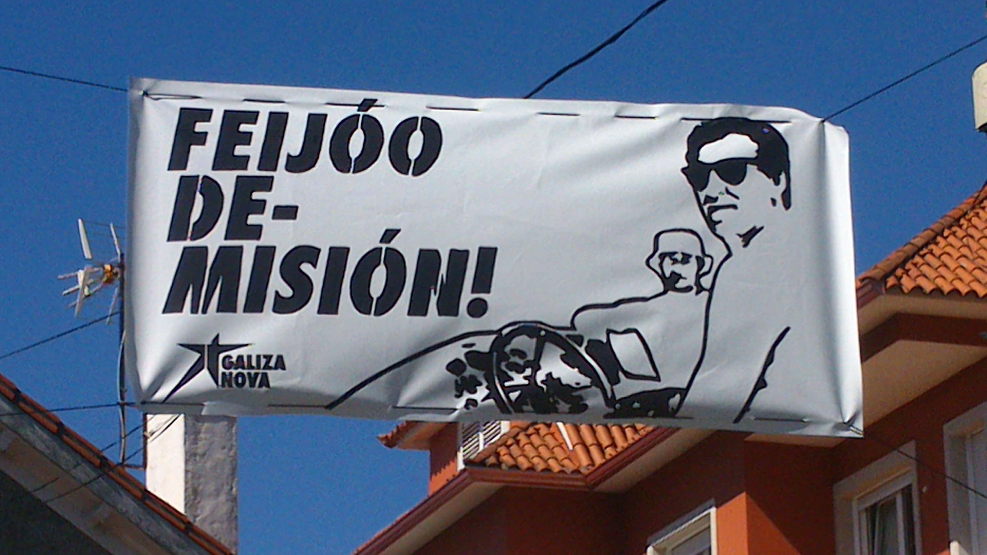 @s moz@s de Galiza Nova da localidade conxunta de Barro-Caldas de Reis-Moraña-Portas colgaron unha faixa no S.Antoniño onde reza “Feijóo de-misión”.