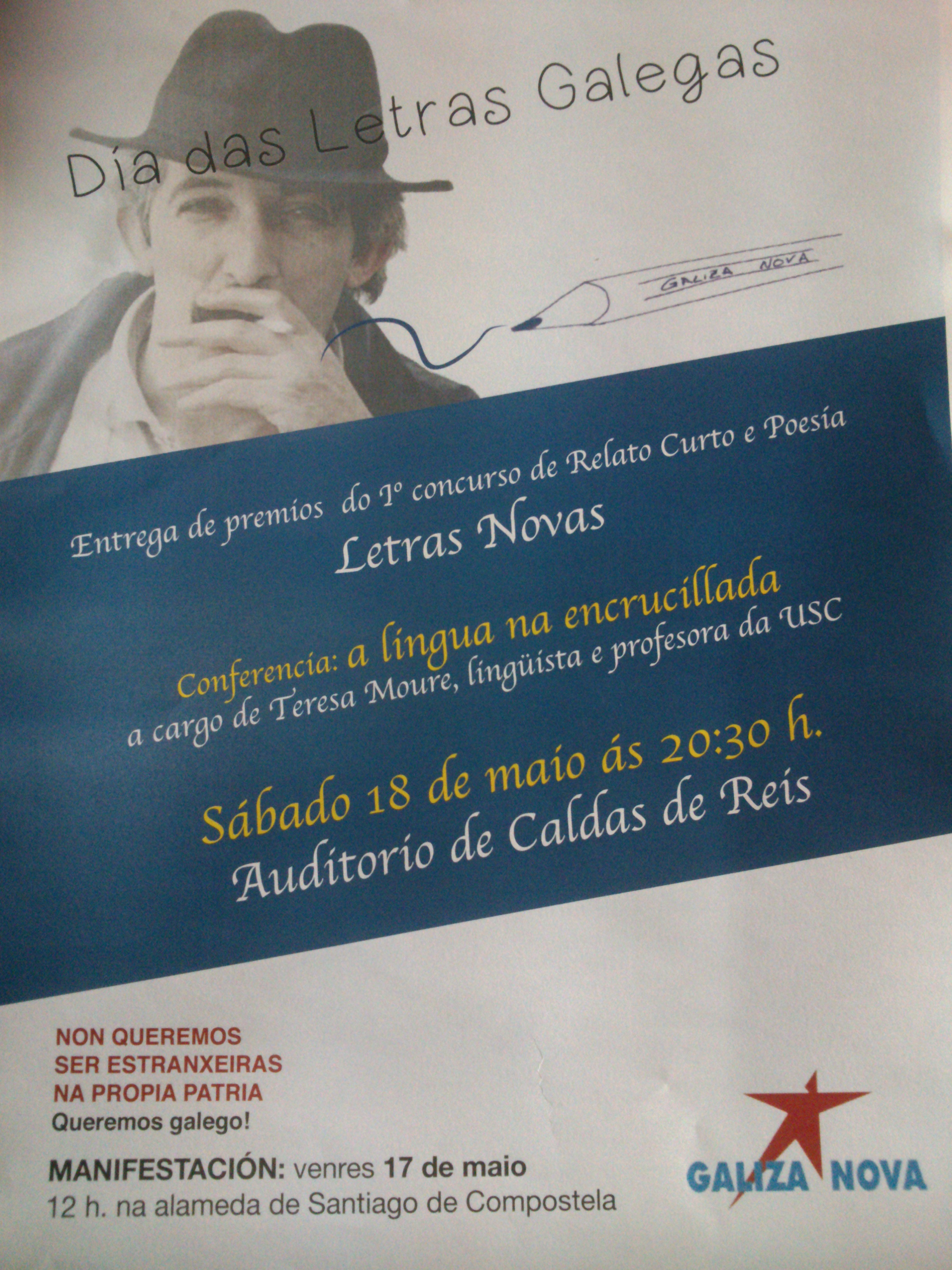 O nome das persoas premiadas daranse a coñecer nun acto público o vindeiro 18 de Maio no auditorio de Caldas de Reis. (A hora do evento debe ser consultada no blogue abaixo citado)