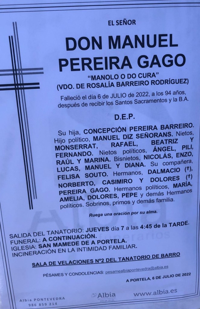 D.E.P. DON MANUEL PEREIRA GAGO “MANOLO O DO CURA”