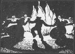 A hora de prenderlle lume era todo un ritual. Nunha pequena fogueira a parte concéntranse tódolos rapaces que traballaron. Dictan normas xerarquizadas chegando incluso a acaloradas discusións para elixir o “xefe” . Unhas veces era escollido por méritos de participación, e as máis porque era un verdadeiro líder.