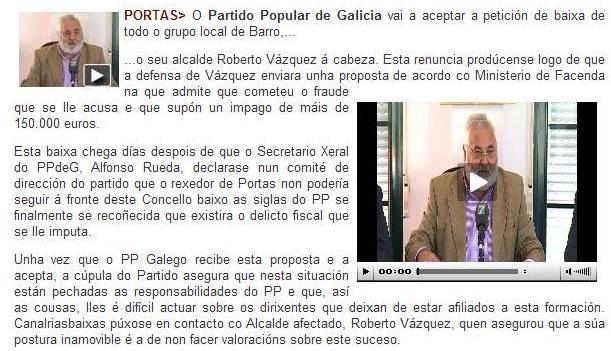 riasbaixas.com e a frase coa que comeza esta noticia ” O Partido Popular de Galicia vai a aceptar a petición de baixa de todo ou grupo local de Barro” só foi un lapso do radactor ou un fallo informatico ao confundir Portas con Barro.