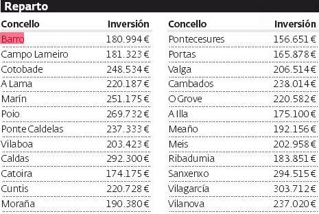 Sobre a mesa da Sala de Xuntas do Pazo Provincial descansaban onte os 265 proxectos de investimento que 62 concellos da provincia (todos salvo Pontevedra e Vigo, que estaban excluídos) presentaron a este plan e que recolle actuacións por valor de 12 millóns de euros. Como novidade este ano, aos municipios déuselles a oportunidade para que un 30% deste plan fose dedicado ao pago de débedas e, pese a iso, os concellos tan só acudiron a un 25% destes fondos. Para o presidente da Diputación isto “demostra que a saúde económica” dos concellos pontevedreses, “aínda sendo difícil, é mellor do esperado”. En total dedicaranse 4 millóns de euros ao pago de débeda dos concellos por gastos correntes.