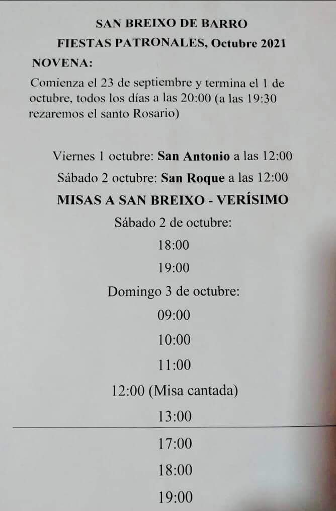 HORARIOS DAS MISAS A SAN BREIXO