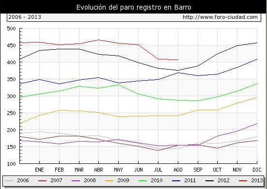 O paro baixa en Barro dous traballadores durante o mes de agosto